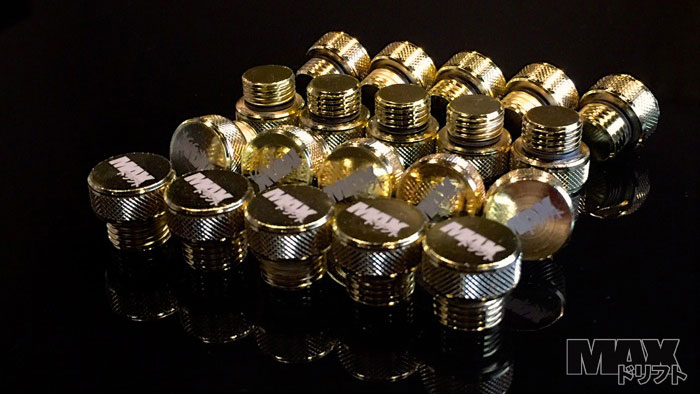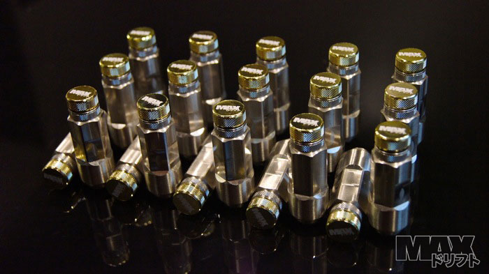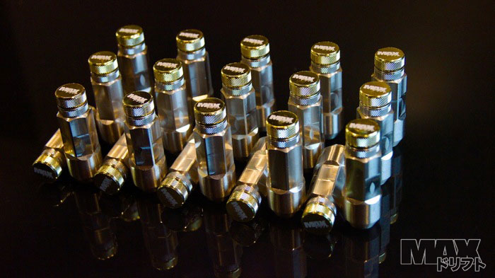 Just in: CLEARCOAT STAINLESS 17mm HEX 50mm length Lug Nuts 12x1.50 thread (Toyota, Mazda, Hyundai) Option: Real gold plated lazer logo aluminum cap set - adds 7mm to length. Next shipment we will see 12x1.25 (Nissan & FRS-BRZ thread) and 11 colors of caps.